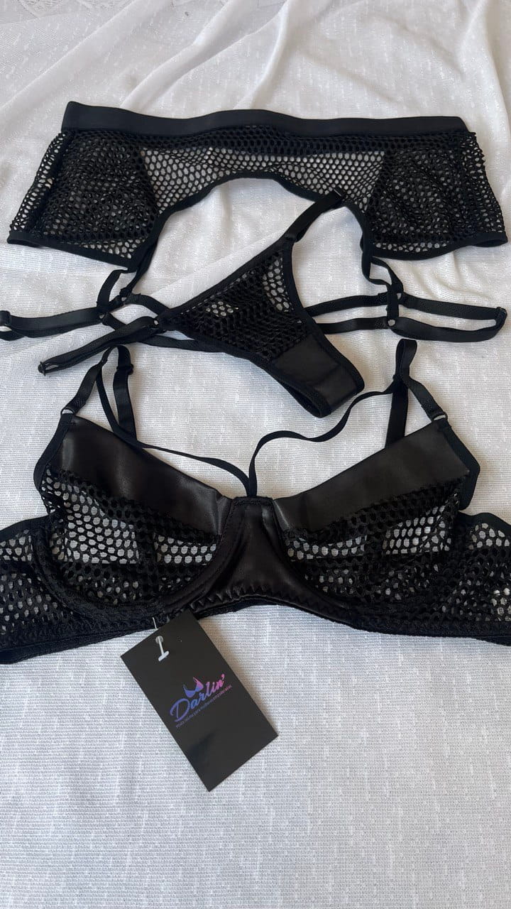 1 avaliação para Conjunto Dara sensual em renda arrastão com cinta-liga